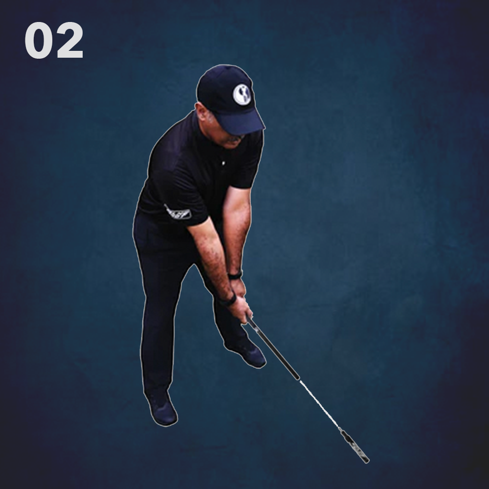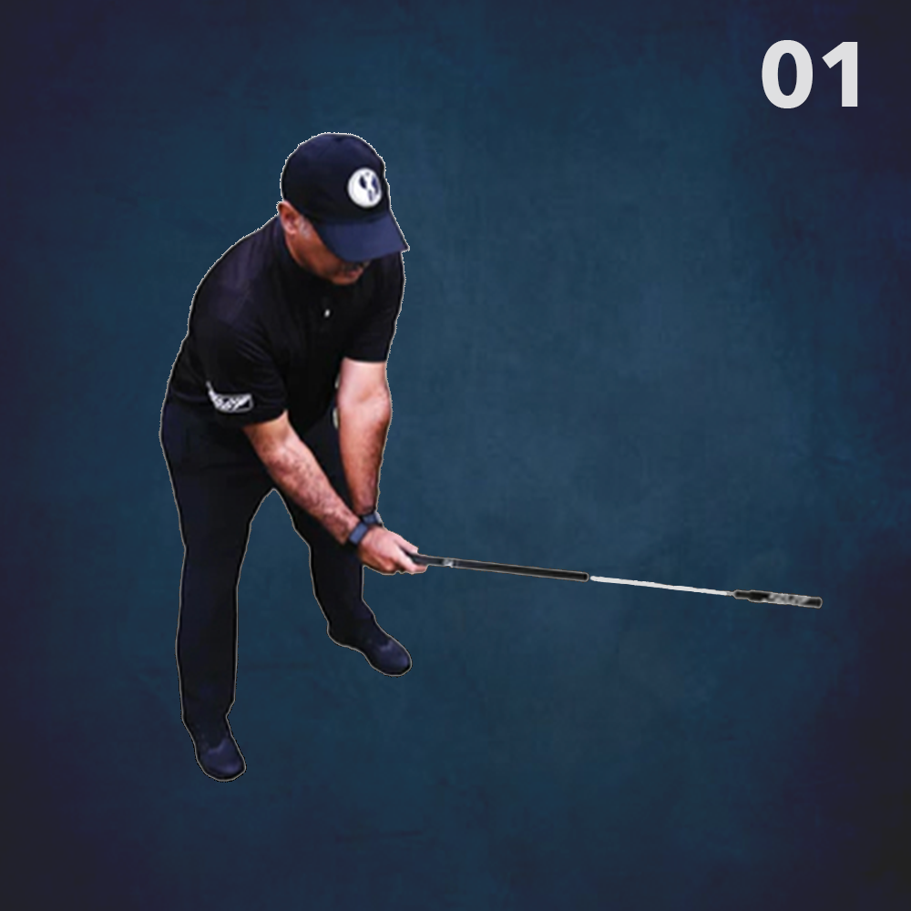Take your normal address position but hover the end of the club about 4- 6″ above the ground.